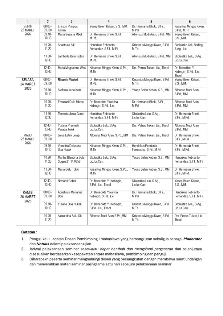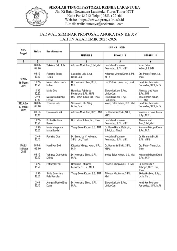 Berikut merupakan jadwal Kegiatan Seminar Proposal Angkatan XV Tahun Akademik 2025–2026: